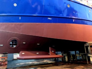We are pleased to announce the installation of a new hull-mounted EM-304 MBES on the GYRE. The modular, state-of-the-art EM 304 performs accurate, high resolution seabed mapping in shallow to deep waters at depths of more than 8000 m. The successor to the EM 302, the EM 304 has a broad range of functionality for seep hunting and cable route projects. Below are pictures of the MBES/SBP gondola on the GYRE.