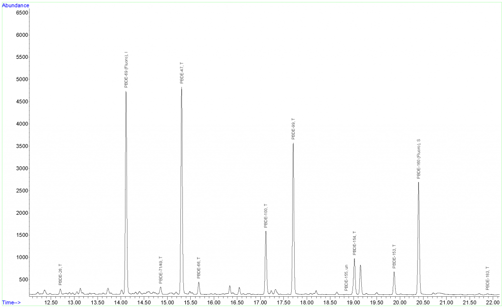 As part of a new group of emerging contaminates , we also offer the determination of Polybrominated Diphenyl Ether (PBDE) & Polybrominated Biphenyls (PBB). Used as flame retardants, these compounds can be found in many commercial and household items from plastic toys, textiles, building materials and laptops. As a quantitative technique used for the determination of PBDE/PBBs (individual congeners) in extracts of sediment, water, and tissue, PBDE/PBB analysis is performed using gas chromatography / mass spectrometry Negative Chemical Ionization (GC/MS-NCI) and (GC/MS) in selected ion monitoring (SIM) mode at sub part per billion concentrations respectively.