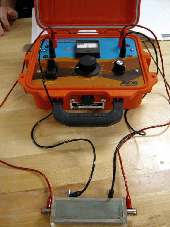 Measurement of sediment electrical resistivity is used for the control of corrosion of buried structures. Electrical resistivity is used both for the estimation of expected corrosion rates and for the design of cathodic protection systems. Resistivity measurements indicate the relative ability of a medium to carry electrical currents. When a metallic structure is immersed in a conductive medium, the ability of the medium to carry current will influence the magnitude of galvanic currents and cathodic protection currents. A soil box with 4 electrodes is used in the lab to conduct this test. Reference ASTM G57.