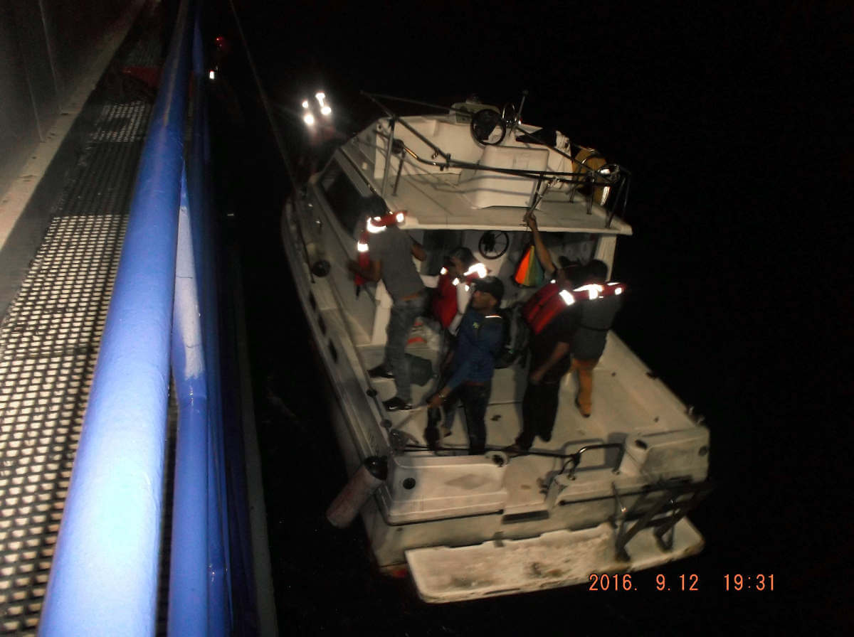 R/V Proteus was called upon to support a Search and Rescue (SAR) operation while transiting from Port Arthur, TX to Paramaribo, Suriname. On the evening of 12 September, a VHF radio call was received for rescue operations of a 25 foot sport fisherman that had been adrift on the southwestern side of Cuba for a week. The vessel in distress had been spotted by a tug and tow operation that was not capable of conducting a rescue. With support and guidance of the USCG Miami, Proteus altered course to intercept and assist. Proteus maneuvered alongside the drifting craft and rescued 8 persons of Cuban nationality. After it was determined that extraordinary medical attention was not required, the crew was fed, berthed, and taken to the Cayman Islands for further assistance.