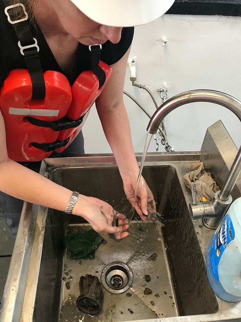 Figure 3: Sediment from the core catcher contained wood fragments, which were rinsed and catalogued. Image courtesy of A. Herrera-Schneider.