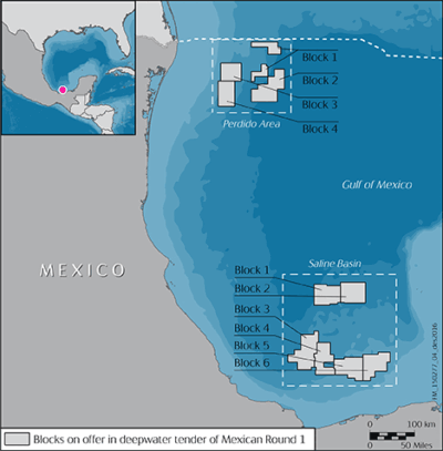 BHP through AMEC Foster Wheeler – Deepwater Trion field (2 blocks) : The Trion field holds some 480 MMbbls with the field covering about 483 sq mi (1,250 sq km) and is located under more than 8,202 ft (2,500 m) of water.