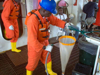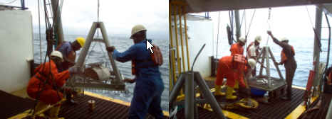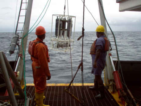 Figure 3. Deployment of the CTD / Rosette package for water column studies.